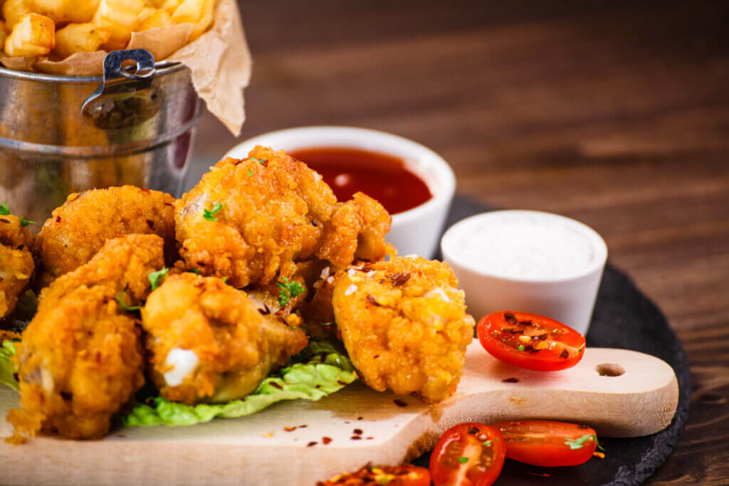 あとは通常のフライドチキン同様、衣をつけて揚げるだけ。